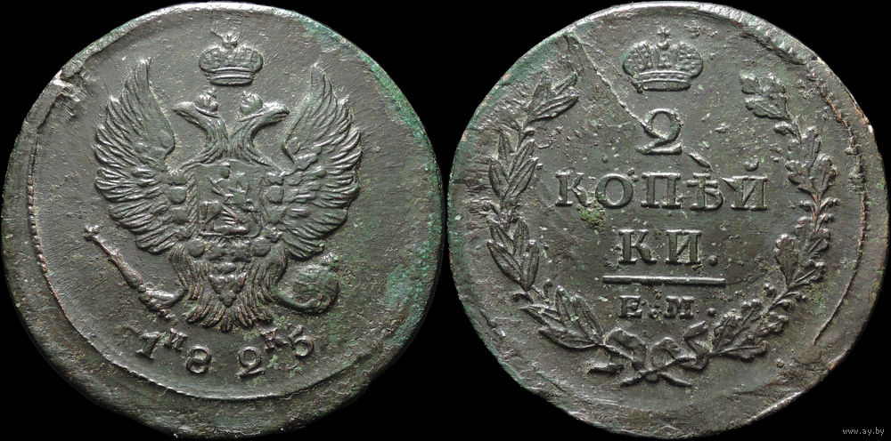2 копейки 1825 ЕМ ПГ, Отличная! Нечастая! С 1 Рубля! Смотрите другие лоты!