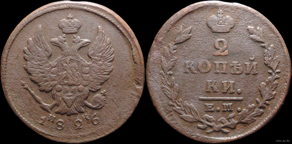 2 копейки 1826 ЕМ ИК, Отличная! С 1 Рубля! Смотрите другие лоты!