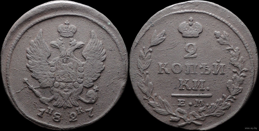 2 копейки 1827 ЕМ ИК, Нечастая! С 1 Рубля! Смотрите другие лоты!