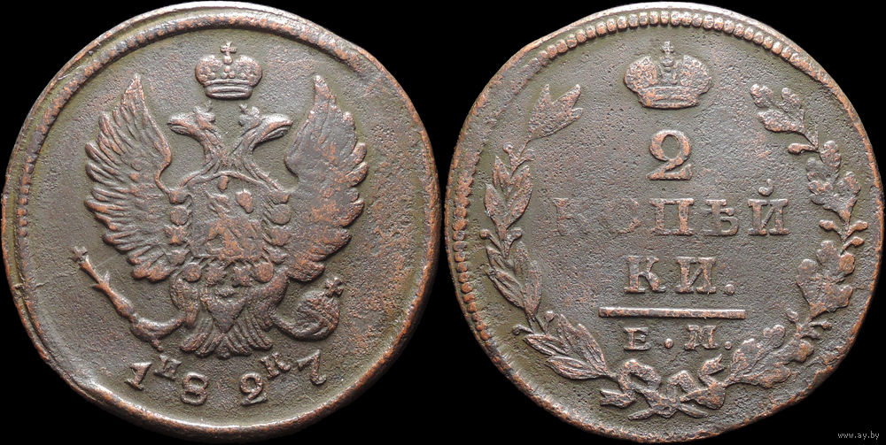 2 копейки 1827 ЕМ ИК, Отличная! С 1 Рубля! Смотрите другие лоты!