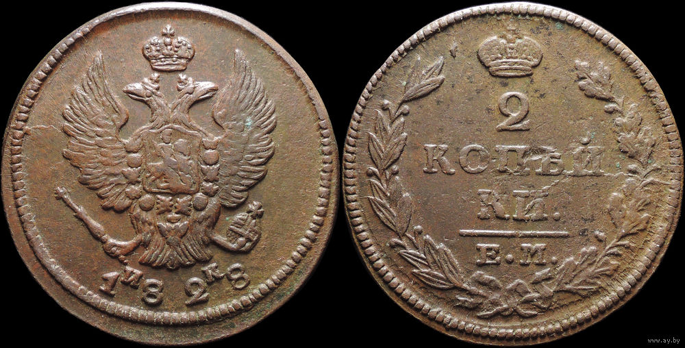 2 копейки 1828 ЕМ ИК, Отличная! Нечастая! С 1 Рубля! Смотрите другие лоты!