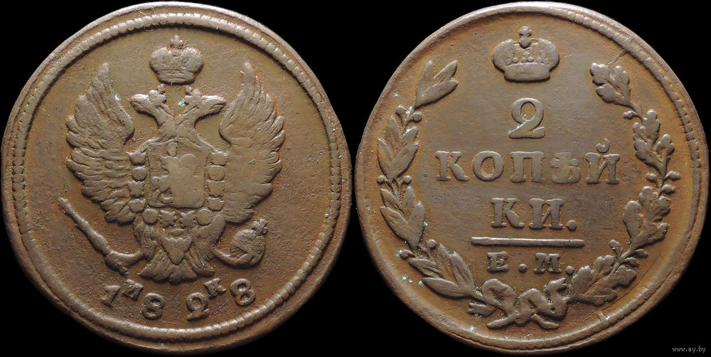 2 копейки 1828 ЕМ ИК, Отличная! С 1 Рубля! Смотрите другие лоты!