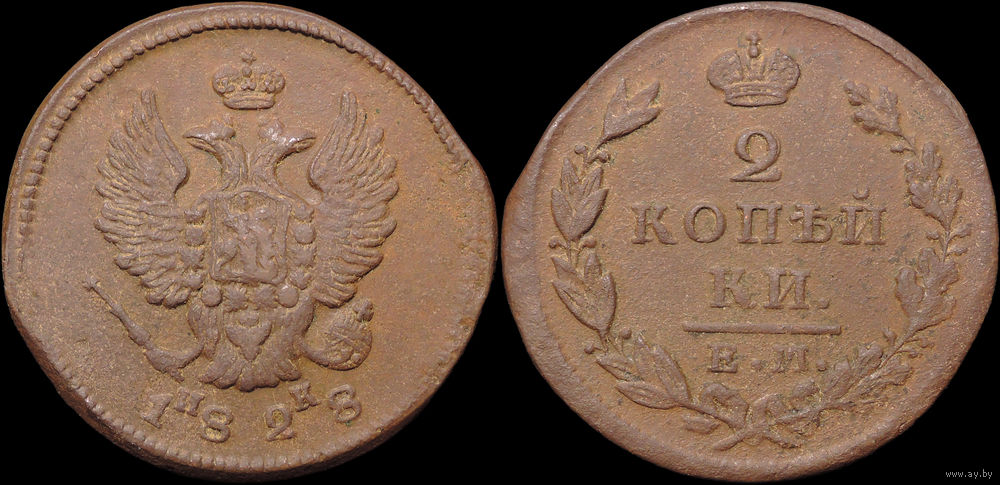 2 копейки 1828 ЕМ ИК, Отличная! С 1 Рубля! Смотрите другие лоты!