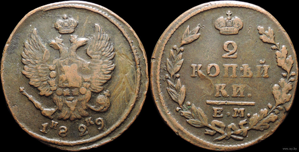 2 копейки 1829 ЕМ ИК, Кабинетная! С 1 Рубля! Смотрите другие лоты!