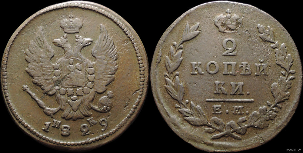 2 копейки 1829 ЕМ ИК, Отличная! С 1 Рубля! Смотрите другие лоты!