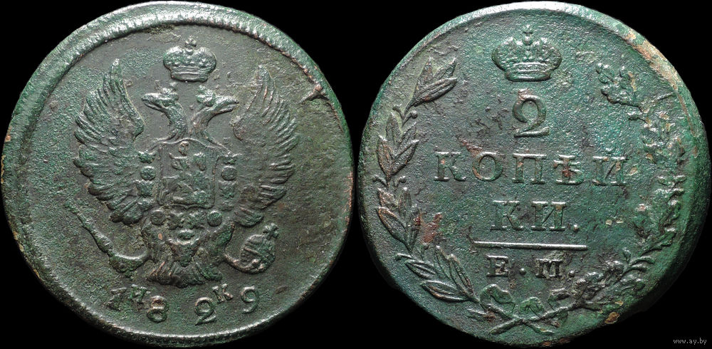 2 копейки 1829 ЕМ ИК, Отличная! С 1 Рубля! Смотрите другие лоты!