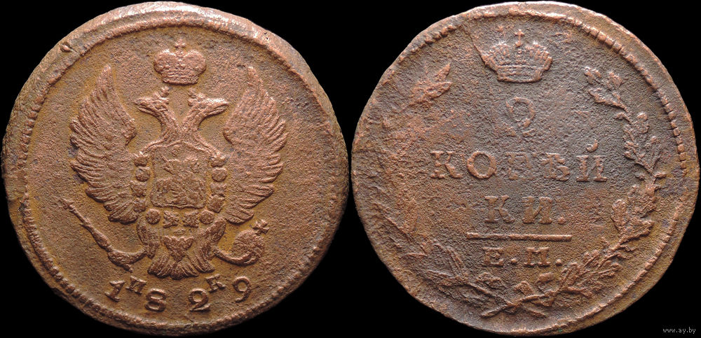 2 копейки 1829 ЕМ ИК, С 1 Рубля! Смотрите другие лоты!