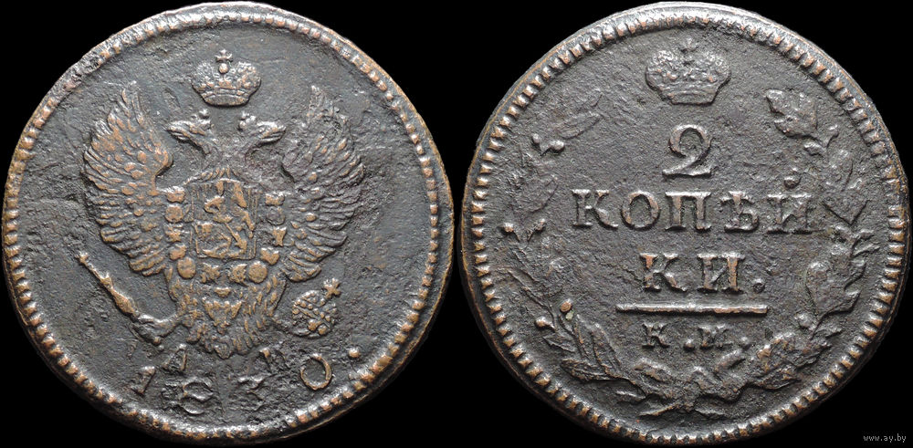 2 копейки 1830 КМ АМ, Нечастая! С 1 Рубля! Смотрите другие лоты!