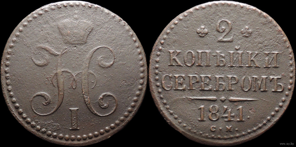2 копейки 1841 СМ, Отличная! С 1 Рубля! Смотрите другие лоты!