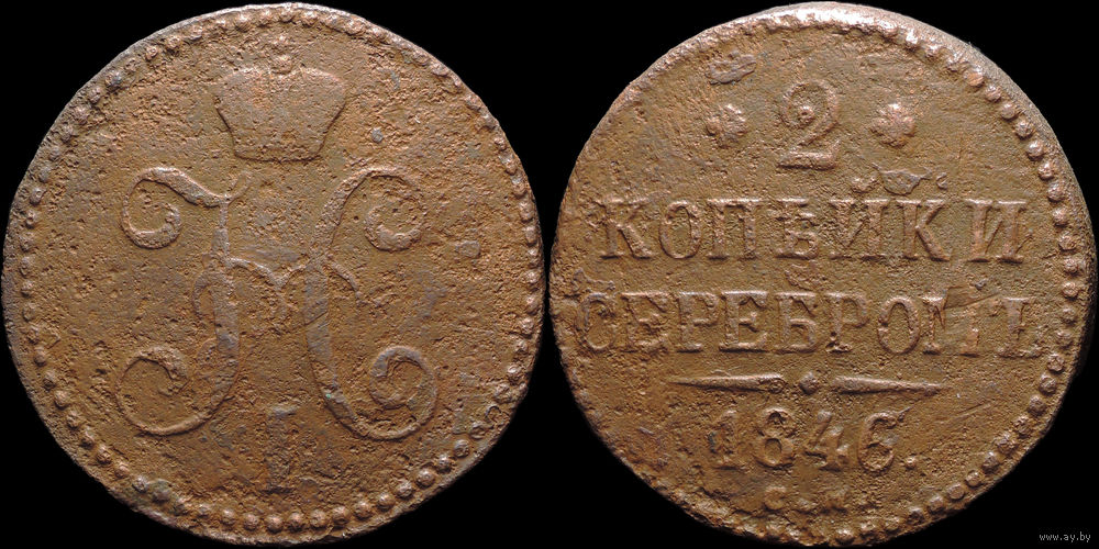 2 копейки 1846 СМ, Нечастая! С 1 Рубля! Смотрите другие лоты!