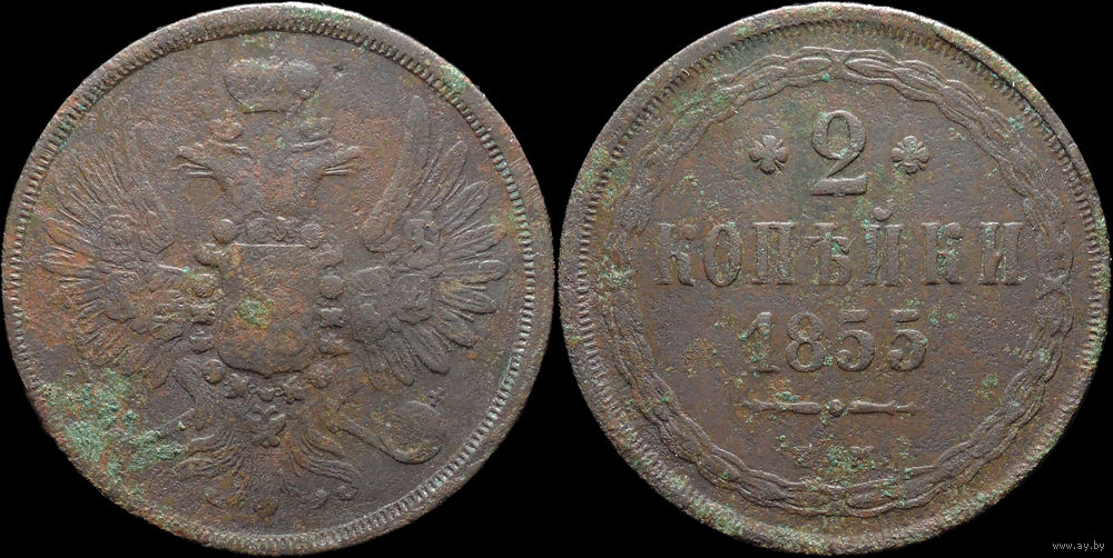 2 копейки 1855 ЕМ, Рельеф! С 1 Рубля! Смотрите другие лоты!