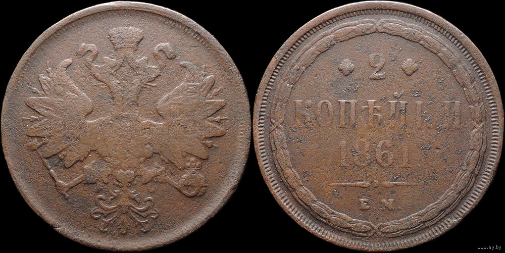 2 копейки 1861 ЕМ, С 1 Рубля! Смотрите другие лоты!