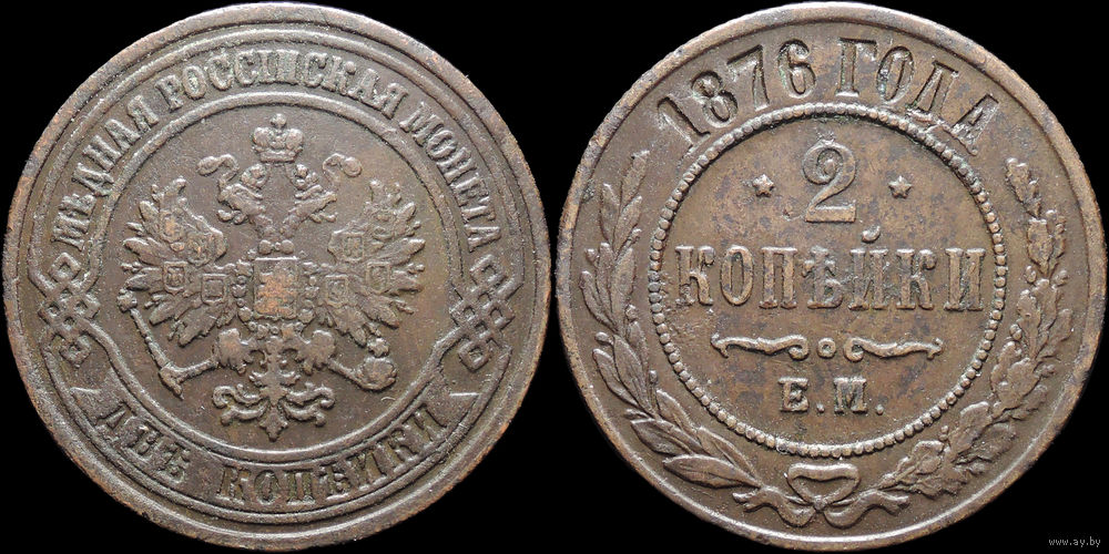 2 копейки 1876, Отличная! С 1 Рубля! Смотрите другие лоты!
