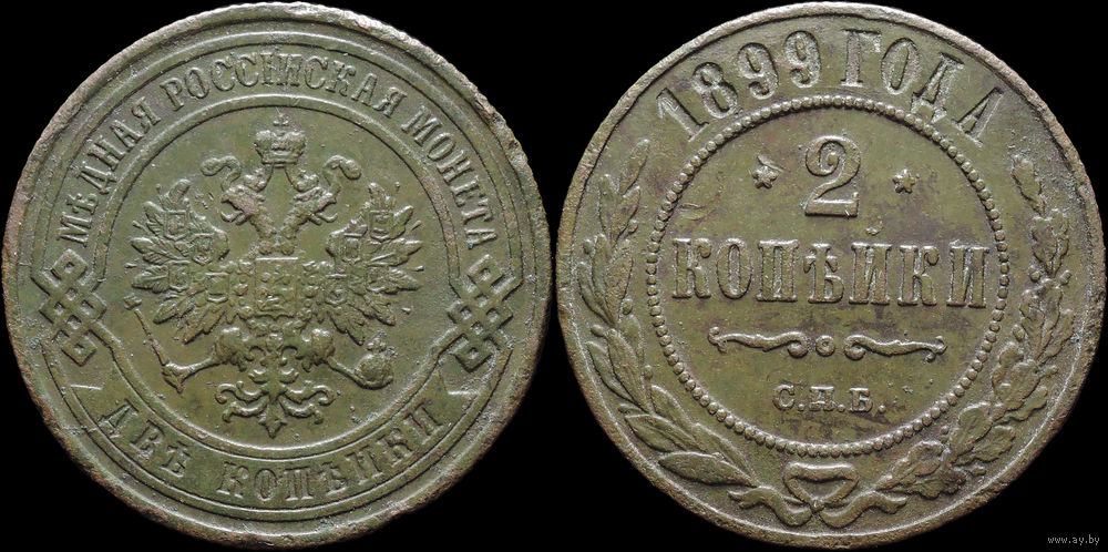 2 копейки 1899, Отличная! С 1 Рубля! Смотрите другие лоты!