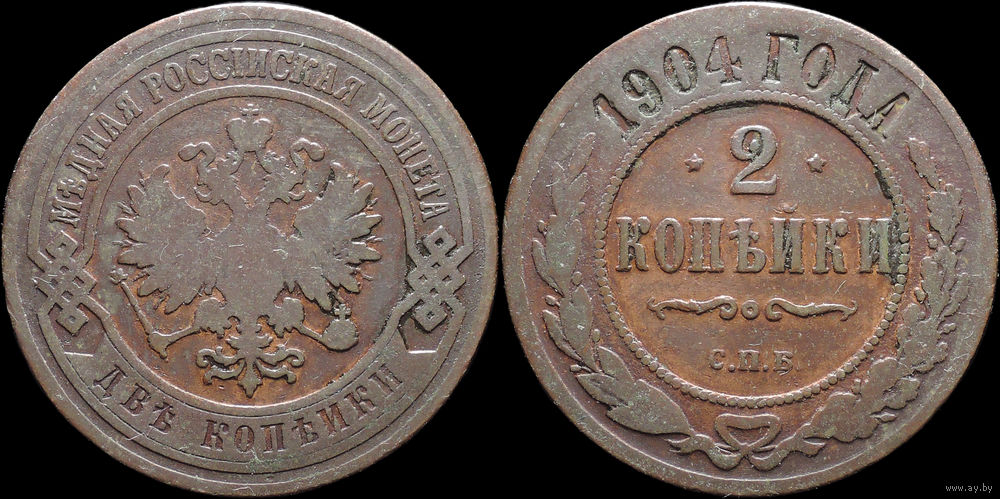 2 копейки 1904, Нечастая! С 1 Рубля! Смотрите другие лоты!