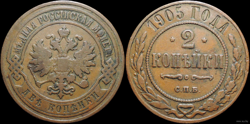 2 копейки 1905, Кабинетная! С 1 Рубля! Смотрите другие лоты!