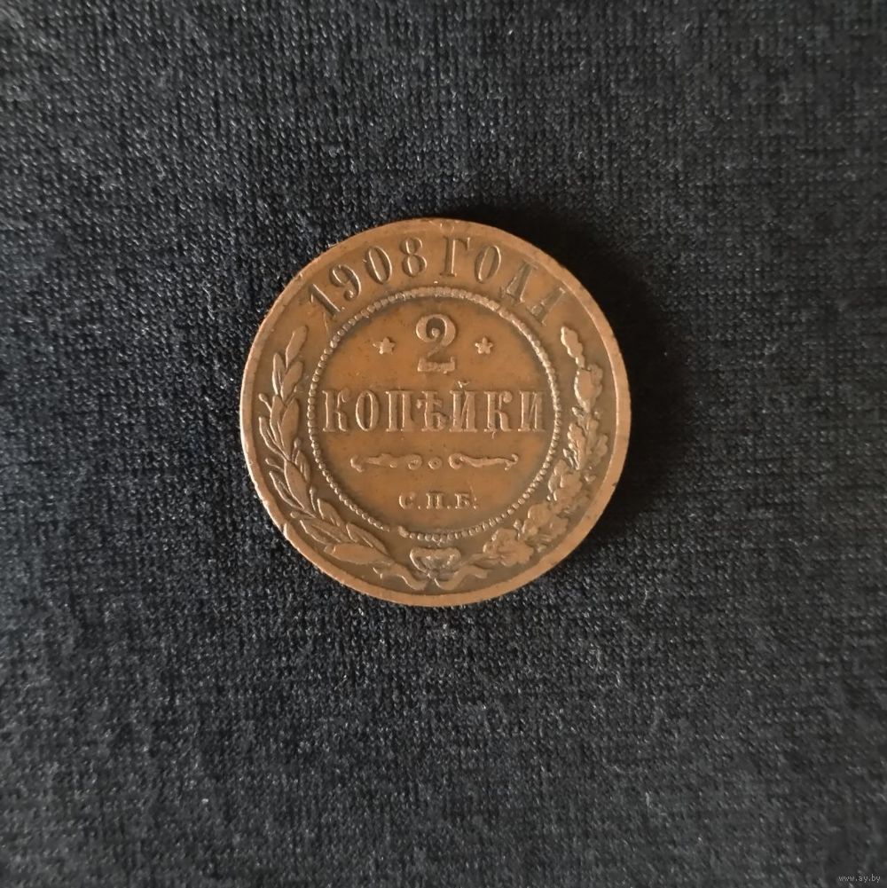 2 копейки 1908 года. Медь. Монета выставлена из личной коллекции.