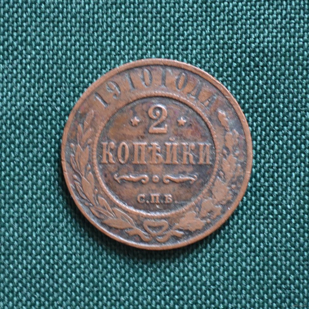 2 копейки 1910 года. Медь. Монета выставлена из личной коллекции.