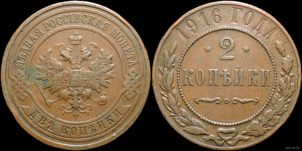 2 копейки 1916, Кабинетная! С 1 Рубля! Смотрите другие лоты!
