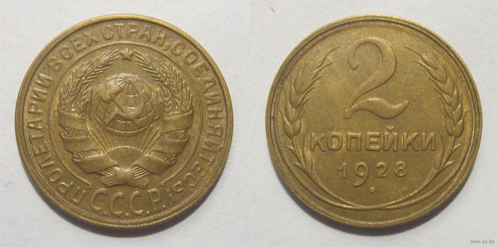 2 копейки 1928 в слабе ННР AU 58