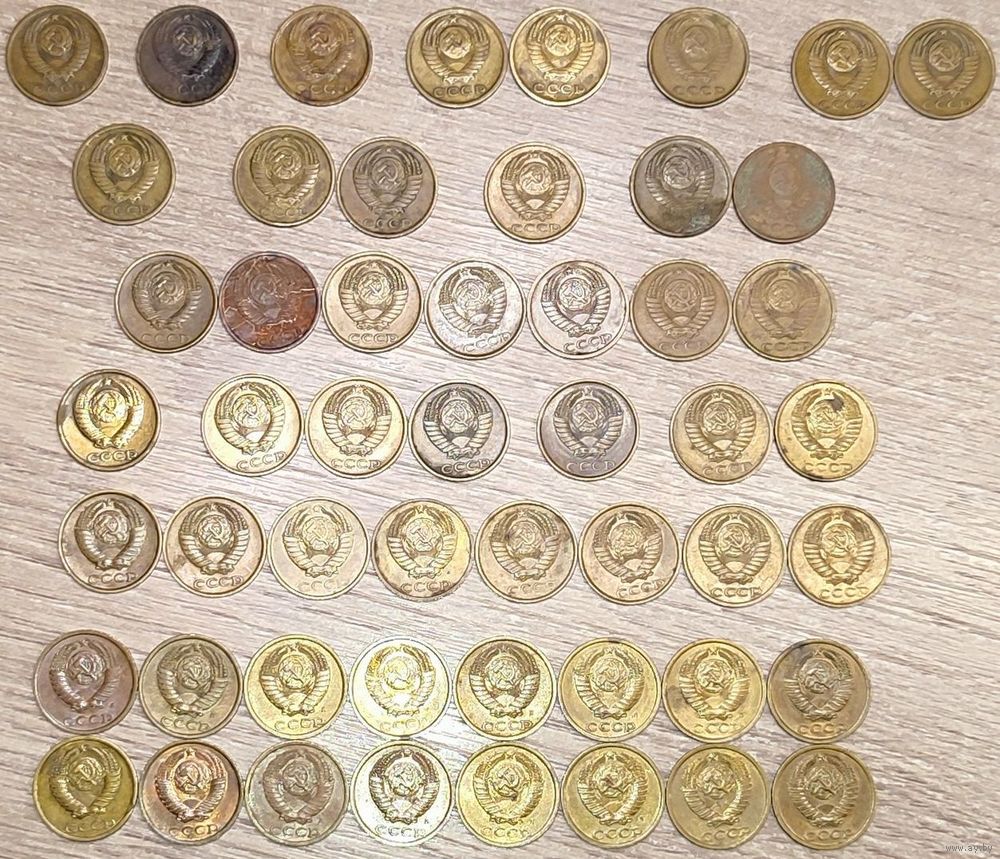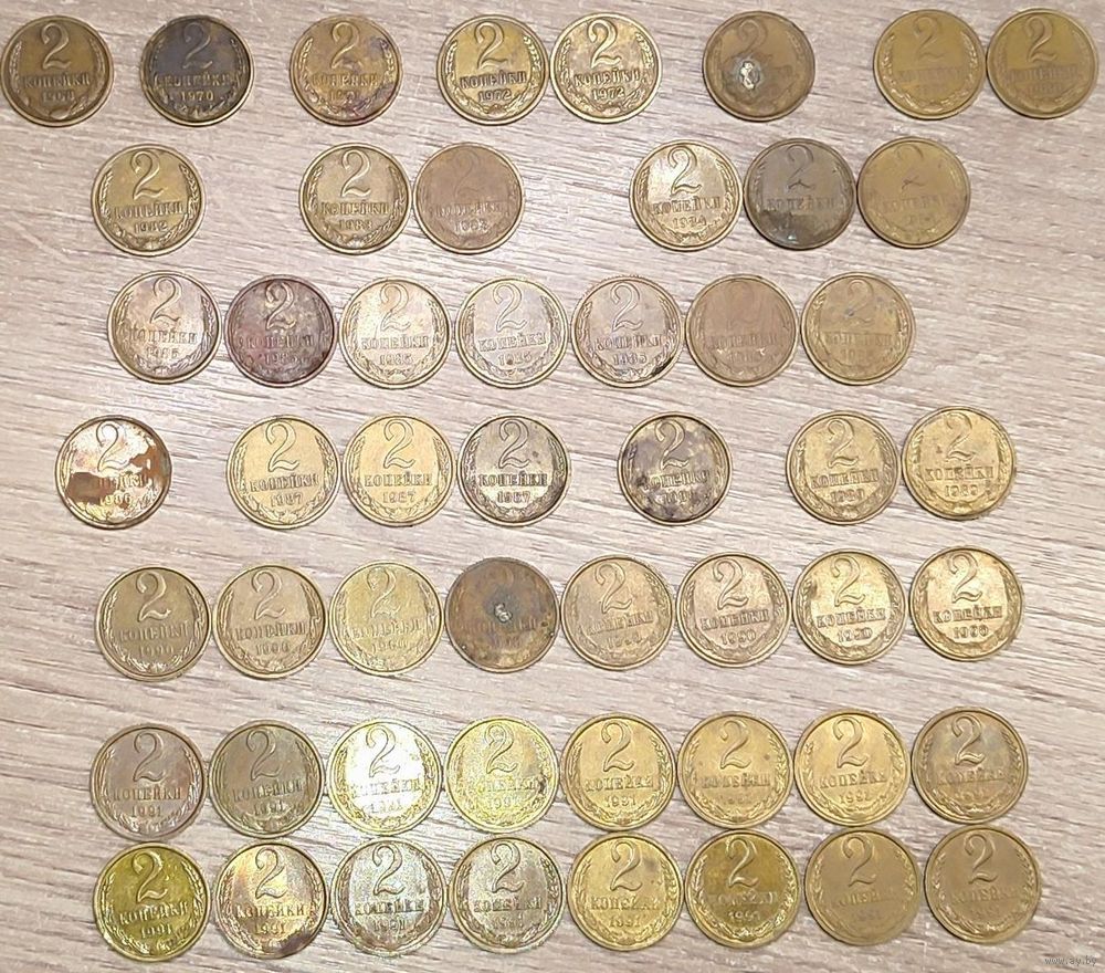 Лот монет номиналом 2 копейки 1968-1991 СССР общим количеством - 52шт: