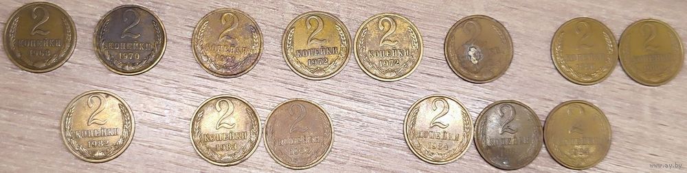 - Монета номиналом 2 копейки 1984 СССР в количестве - 3шт (все немагнитные). У одной окисленный аверс