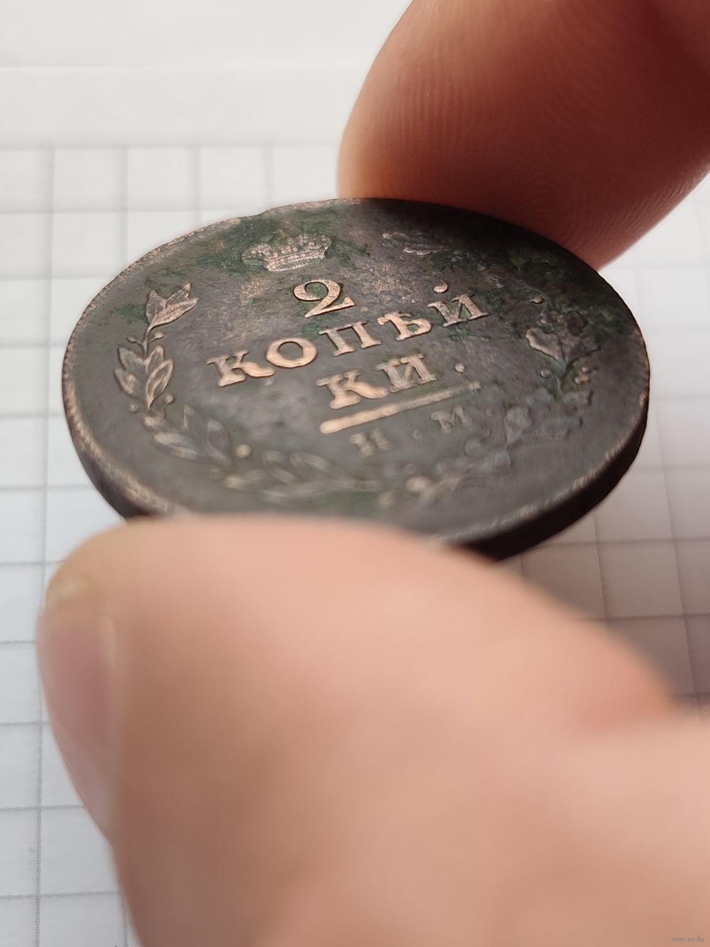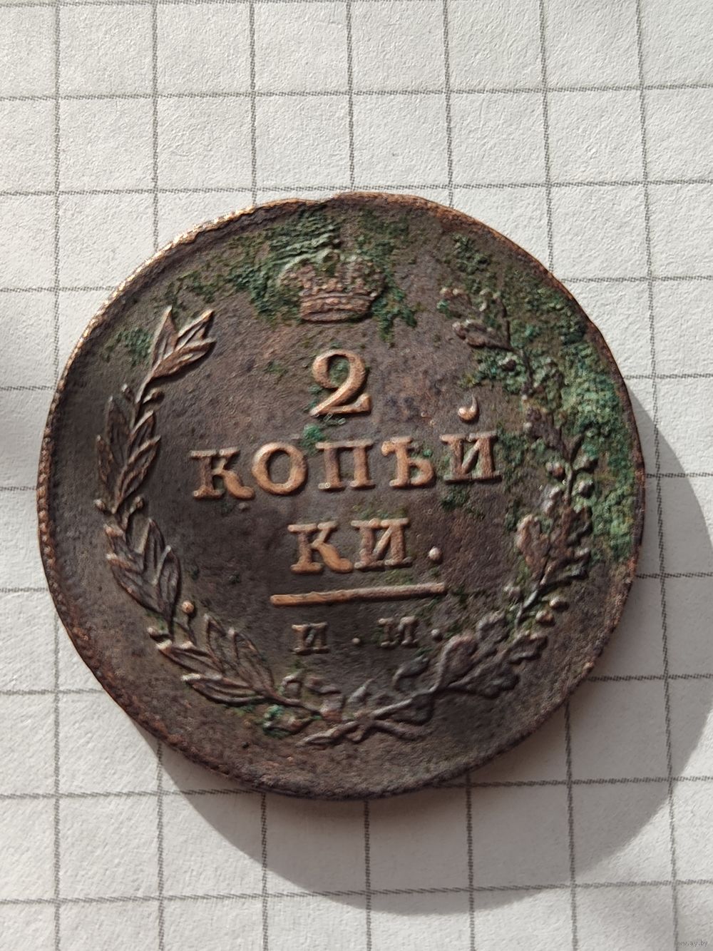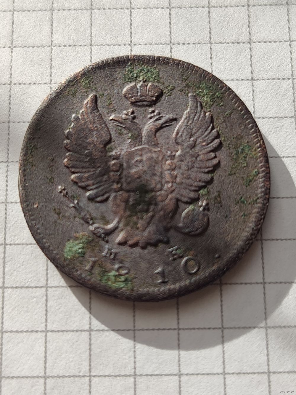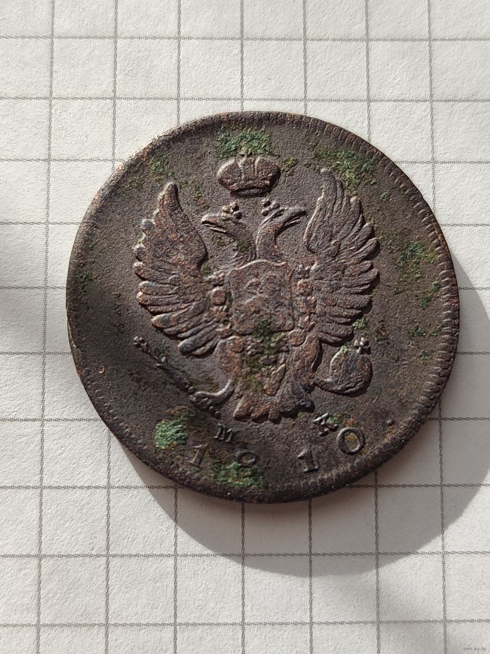 Медная монета 2 копейки 1810 года с буквами «ИМ-МК» (Ижорский монетный двор, минцмейстер Михаил Клейменов) — это царская монета периода Александра1,монета не чищеная,доп фото по запросу