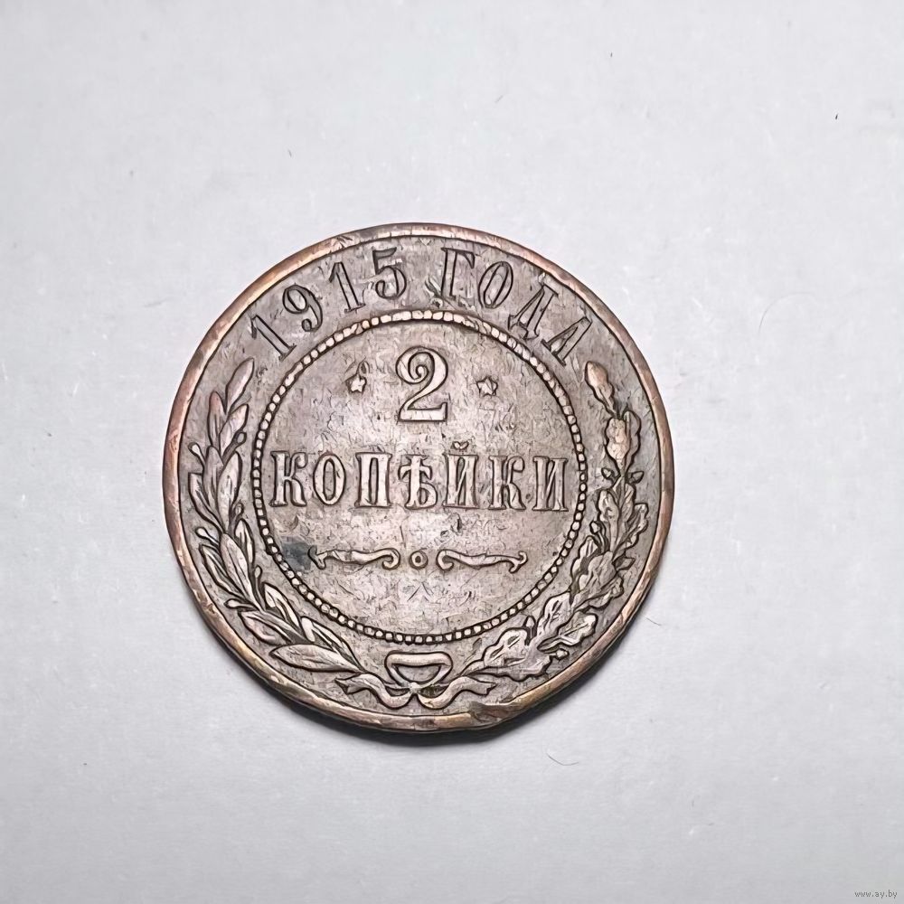 Красивая монета 2 копейки РИ 1915 года.