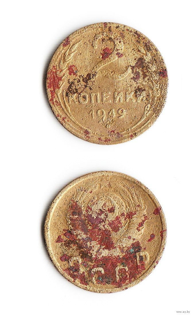 2 копейки СССР 1949 года, состояние отображено на скане.