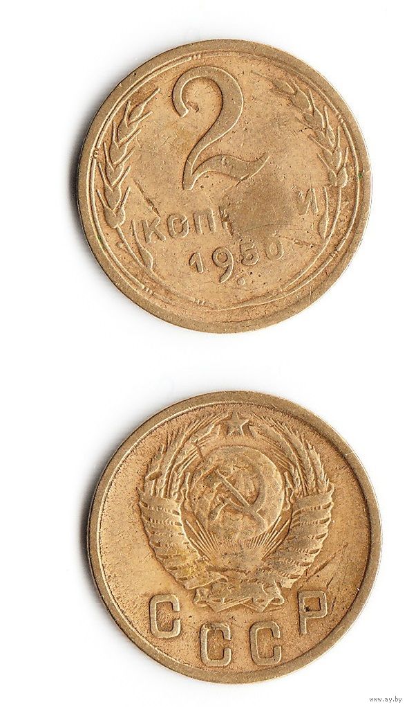 2 копейки СССР 1950 года, состояние отображено на скане.