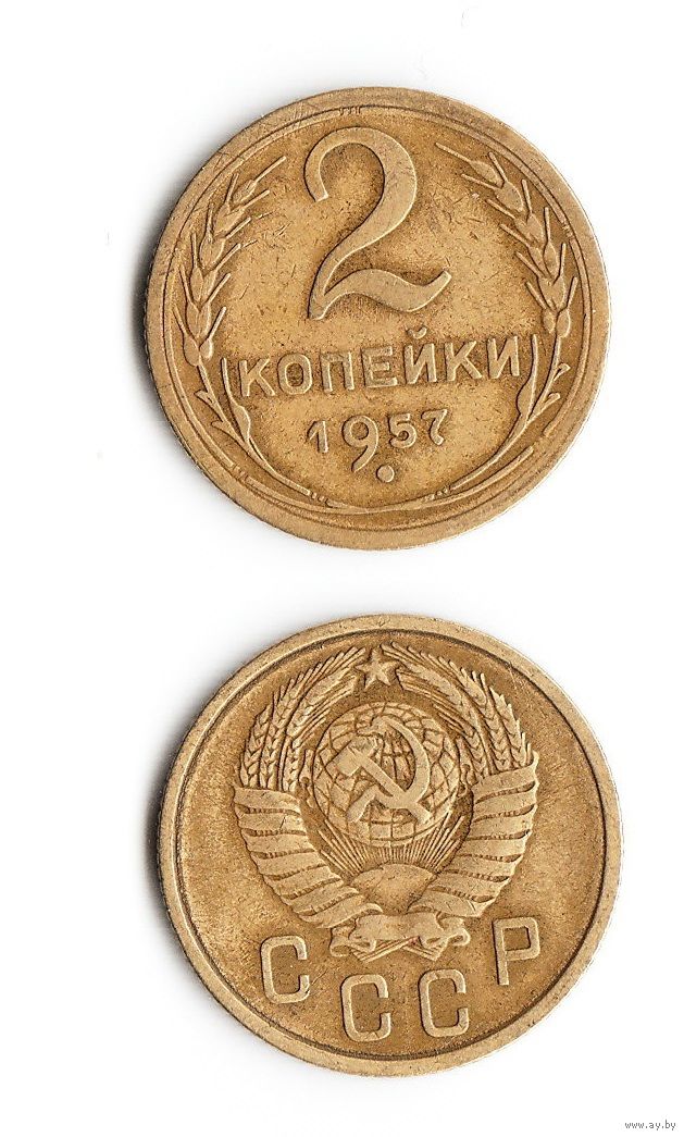 2 копейки СССР 1957 года, состояние отображено на скане.