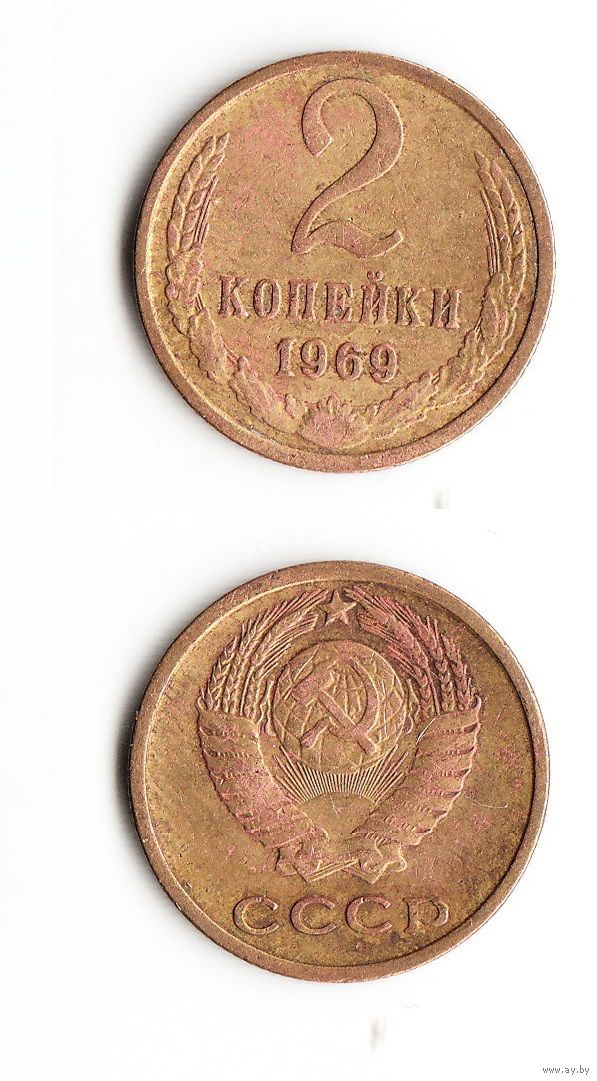 2 копейки СССР 1969 года, состояние отображено на скане.