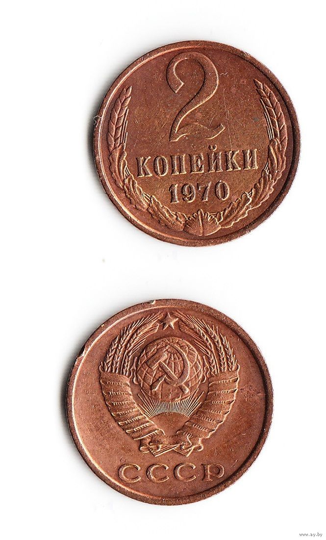 2 копейки СССР 1970 года, состояние отображено на скане.