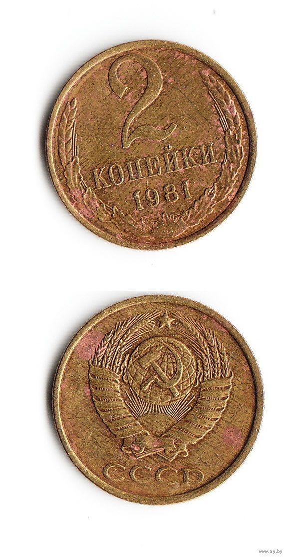 2 копейки СССР 1981 года, состояние отображено на скане.