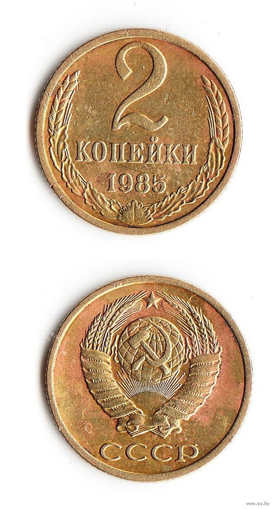 2 копейки СССР 1985 года, состояние отображено на скане.