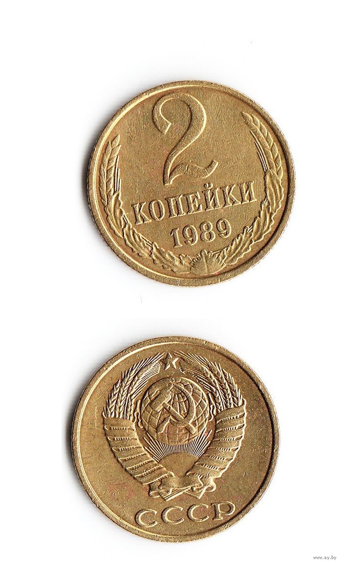 2 копейки СССР 1989 года, состояние отображено на скане.