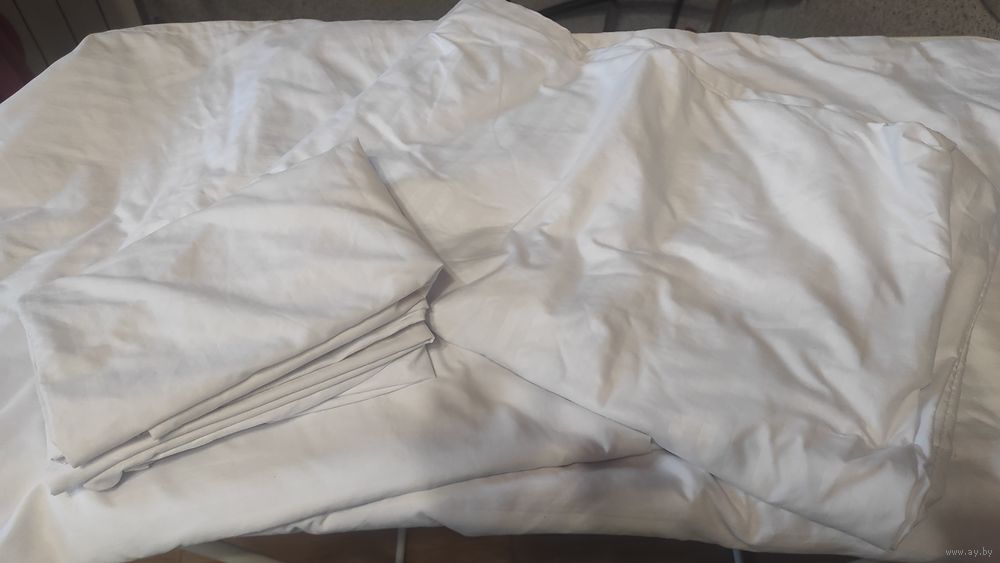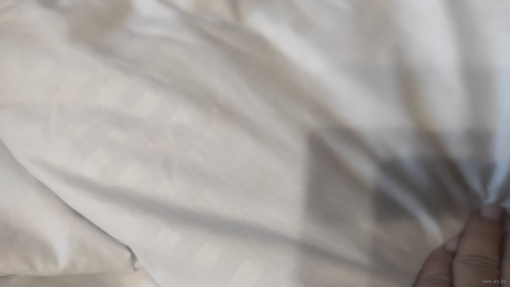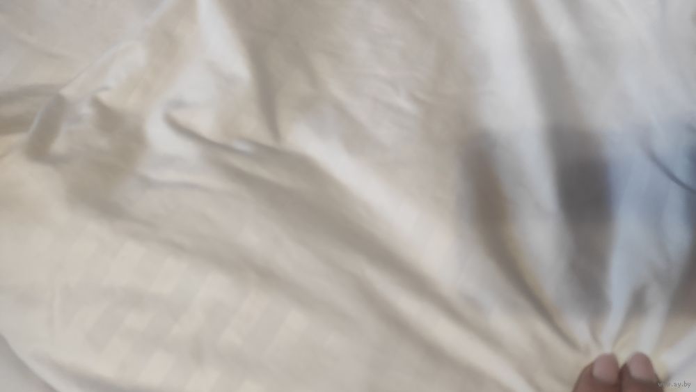 Фото 5-7. Комплект светлый в полоску, сатин. Пододеяльник 2 штуки (размер 230 см на 155 см). Наволочки 2 штуки (размер 67 на 50 см). Хороший, дорогой комплект, б/у, целый. Нужна стирка, естественно, не такой белоснежный, как был первоначально. Цена 50,00