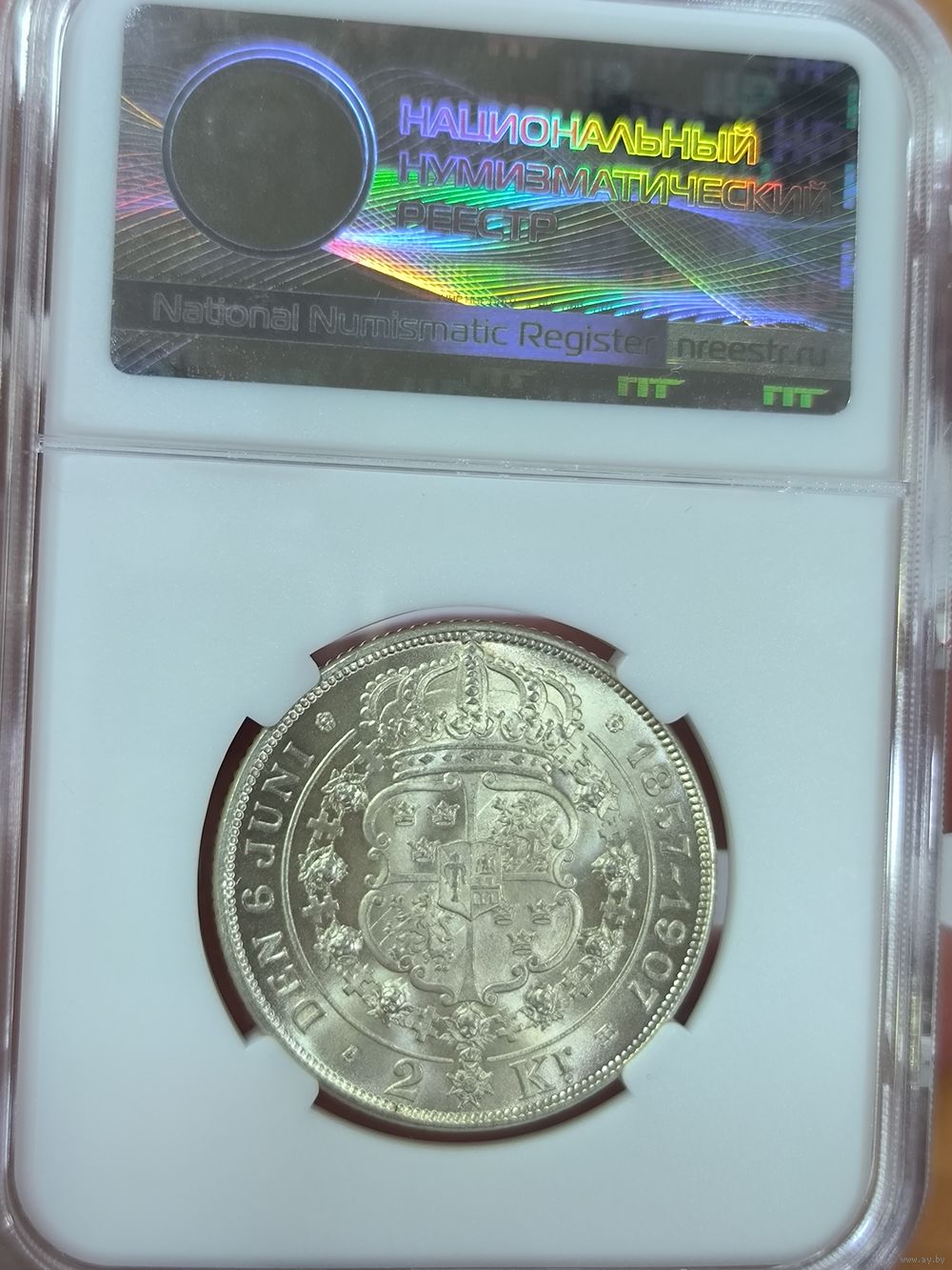 2 кроны 1907 Швеция ms 65 ННР 50 лет свадьбе Оскара II и Софии! нечастая!