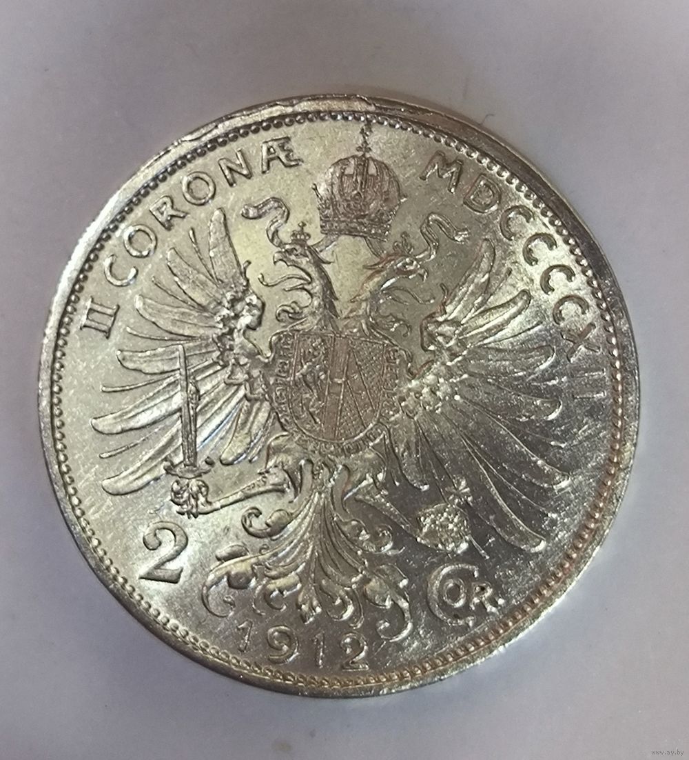 2 кроны 1912 Австро-Венгрия. Яркий штемпельный блеск!