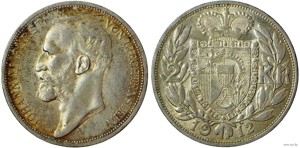 2 кроны 1912 г. Иоганн II. Лихтенштейн. Серебро. Отличное коллекционное состояние. Очень редкие. Краузе Y#3.