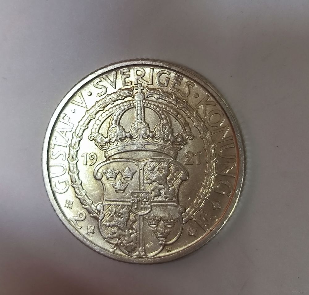 2 кроны 1921 Швеция - 400 лет независимости штемпельная!