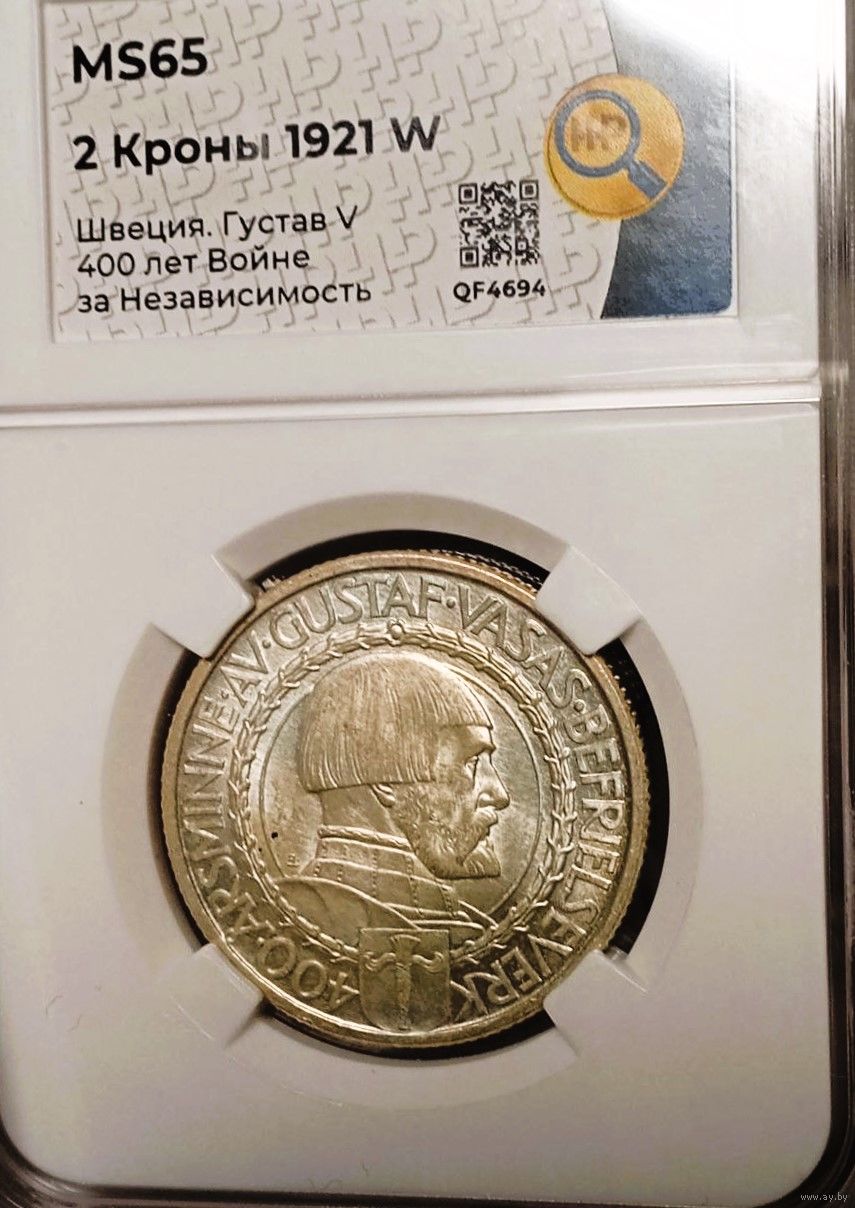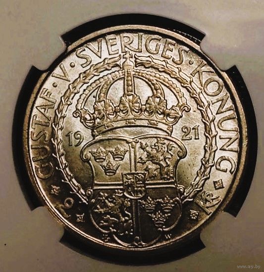Юбилейная монета, 2 кроны 1921, Швеция "400 лет войне за независимость", Густав V, красивейшее серебро!