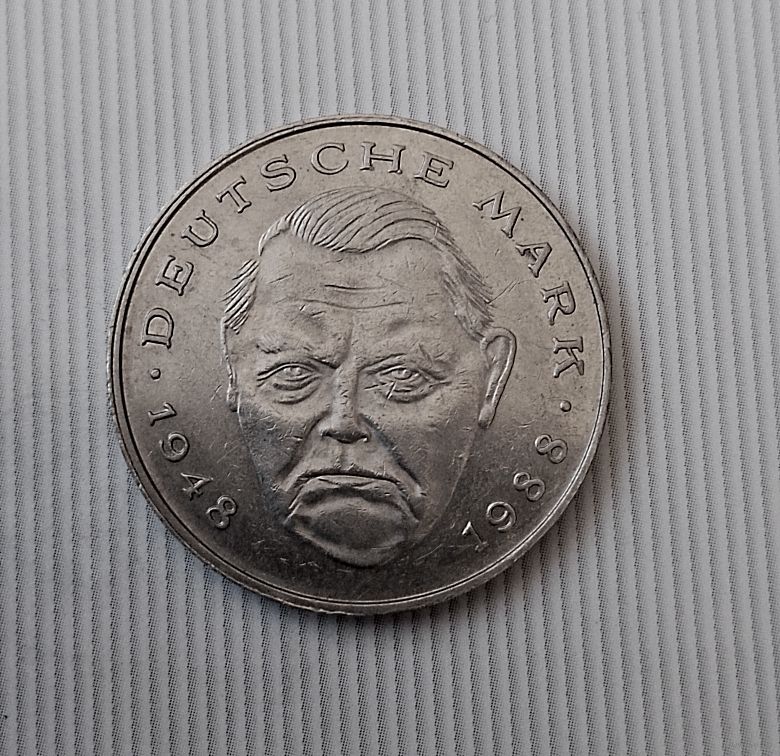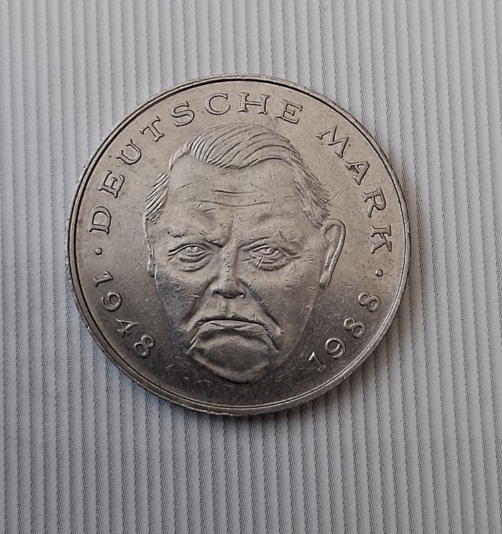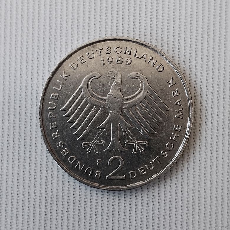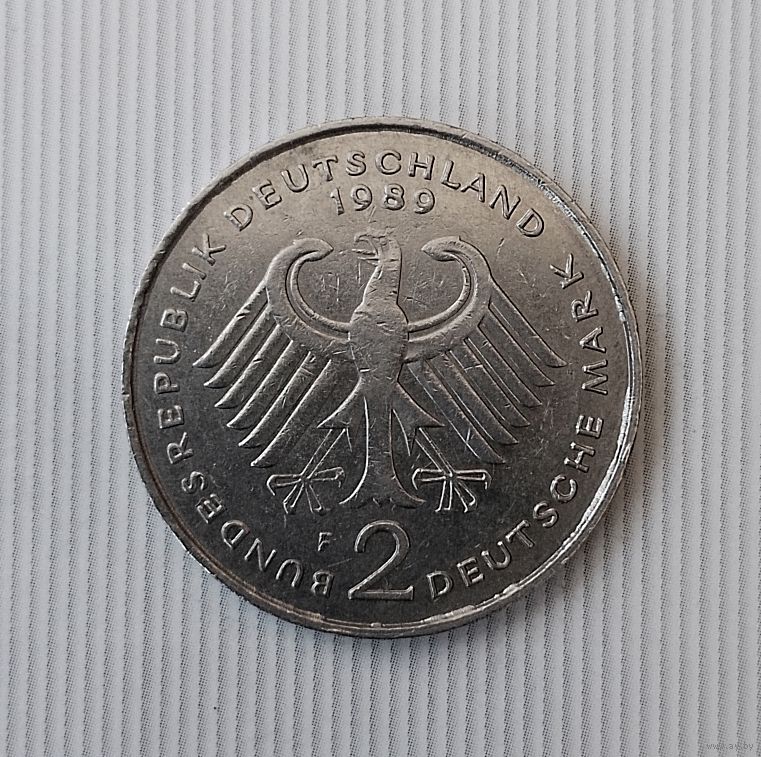 2 марки 1989 года (F) Германия. Федеративная республика (ФРГ). Людвиг Эрхард. 40 лет ФРГ. Единственная на аукционе!