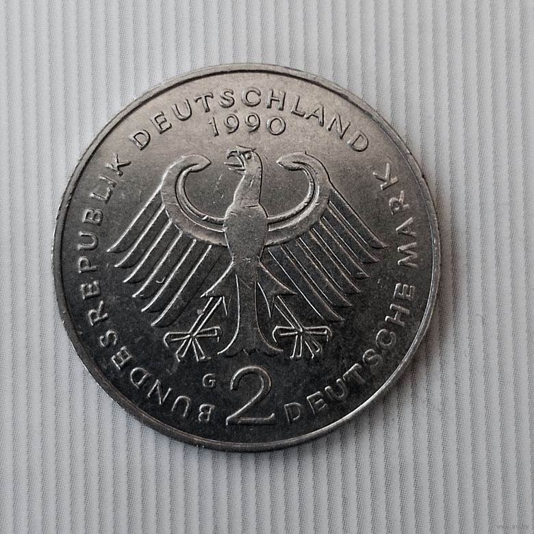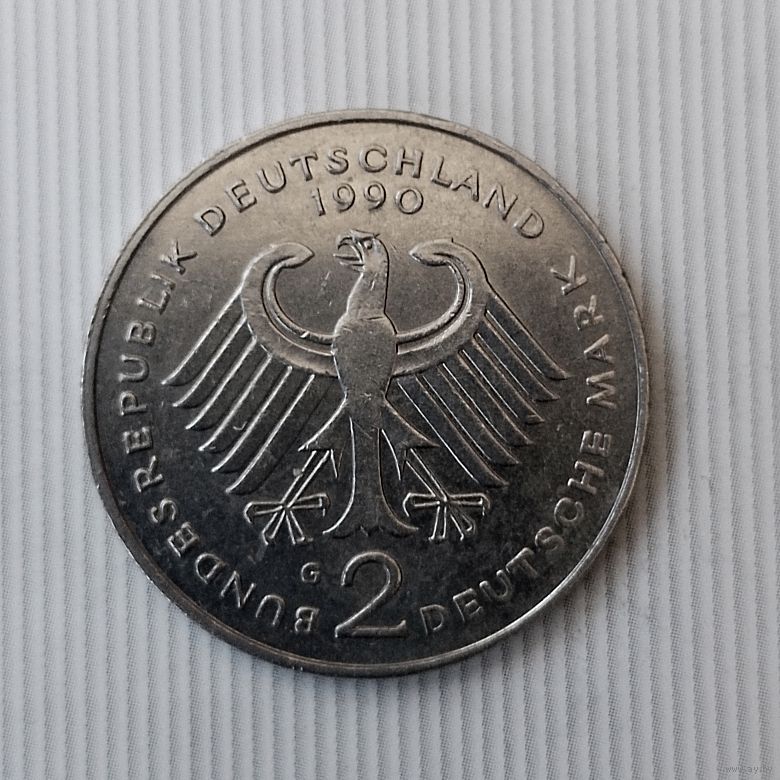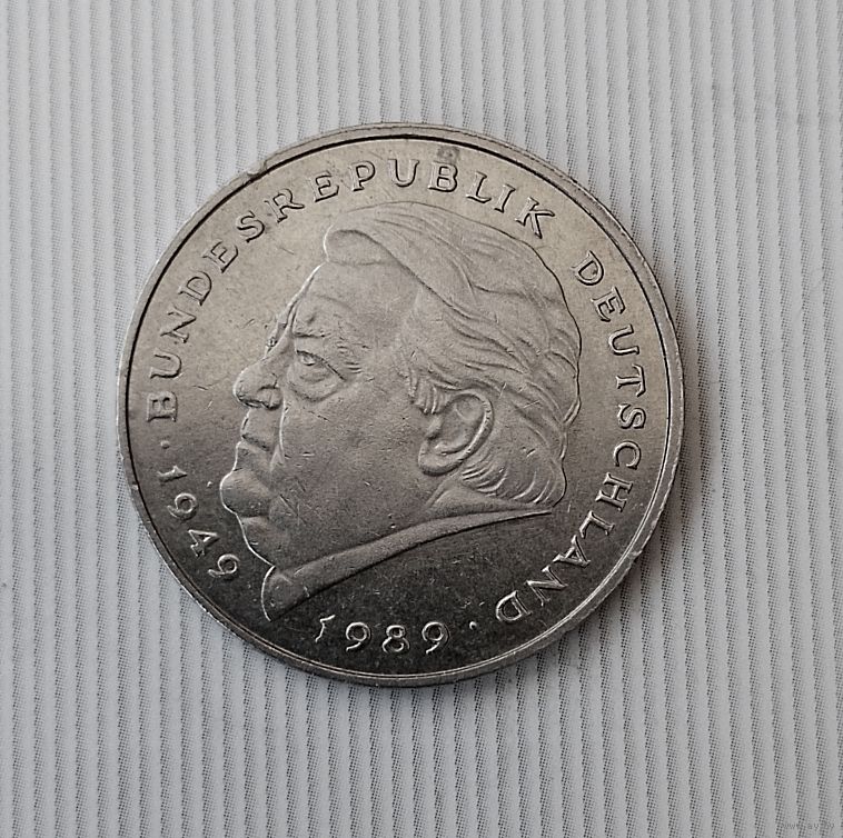 2 марки 1990 года (G) Германия. Федеративная республика (ФРГ). 40 лет ФРГ. Франц Штраус.