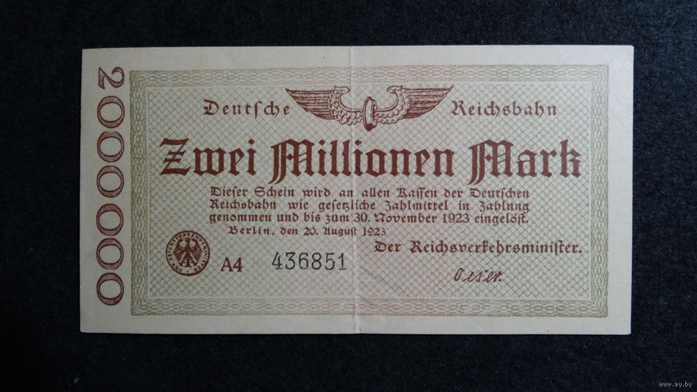 2 миллиона марок 1923г. Берлин (железная дорога)