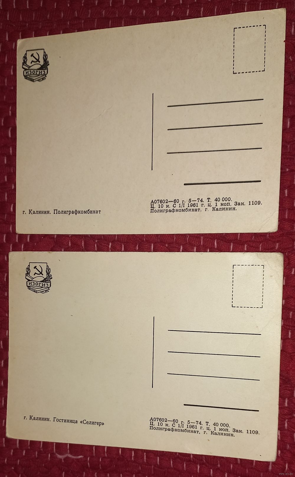 2 открытки г Калинин 1960( )