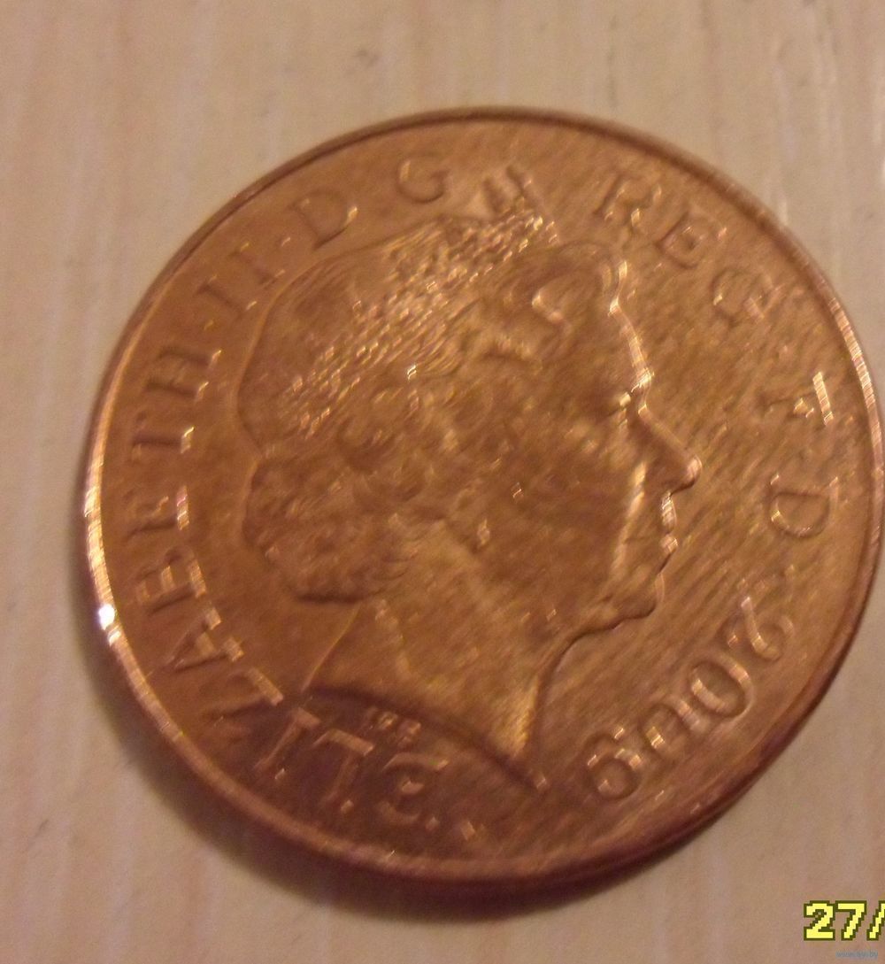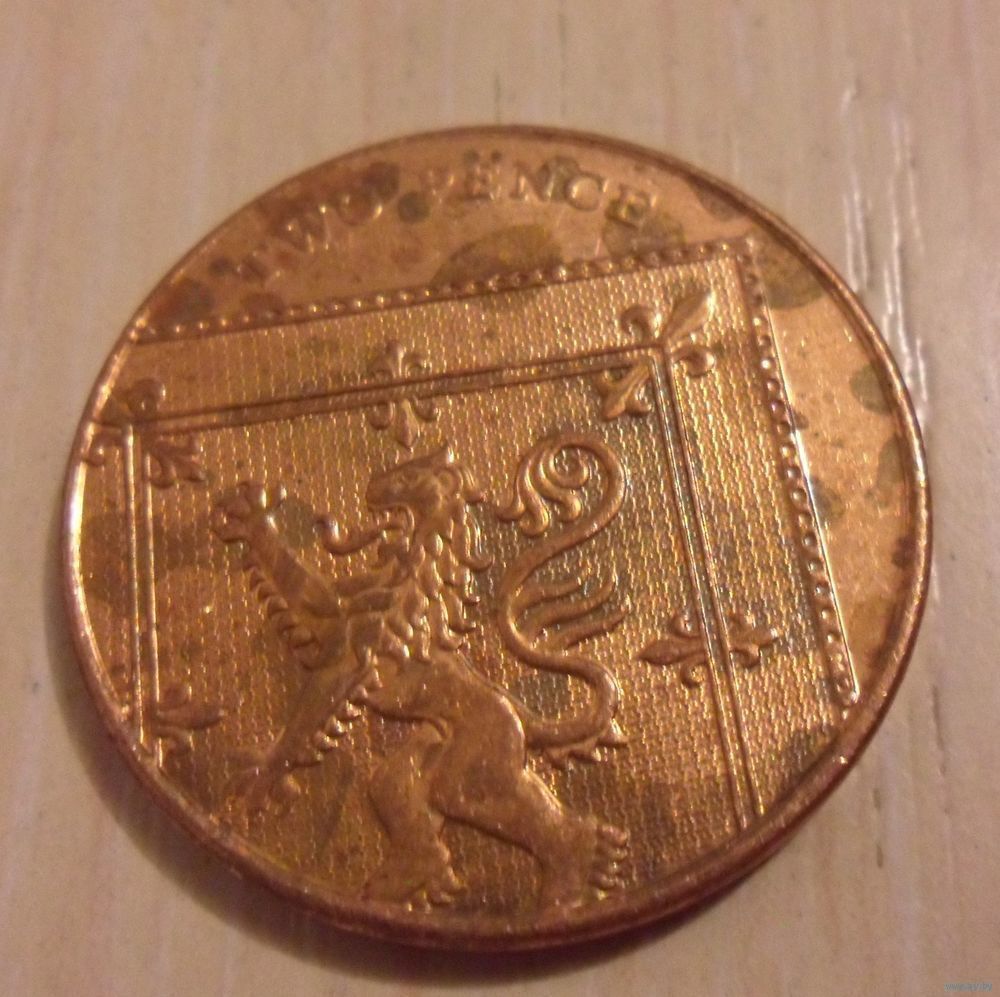 2 пенса Великобритания 2009 г.в. - Фрагмент герба Британской Королевской семьи.