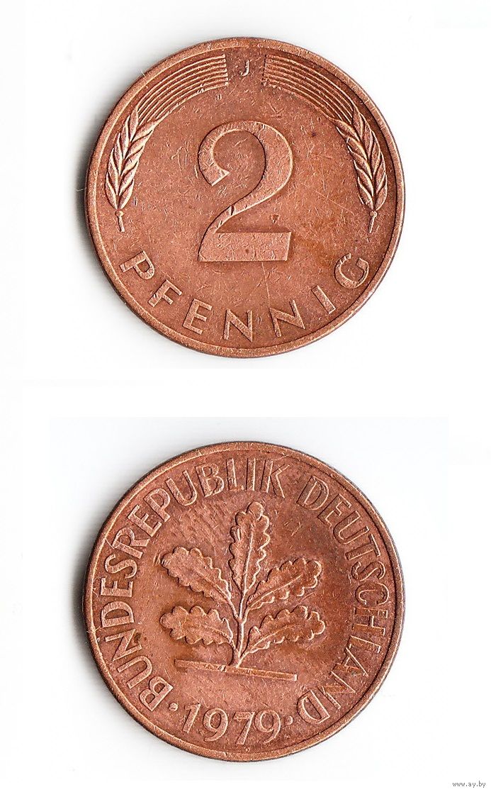 2 пфеннига Германия 1979 года(J)