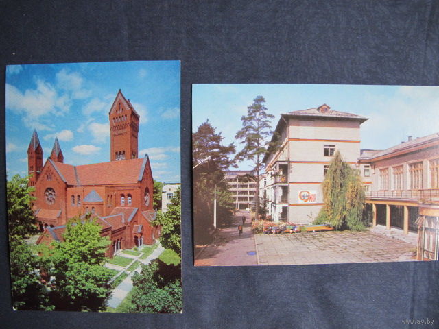 2 почтовые открытки "Минск и окрестности". Дом кино (1980 г.), санаторий "Крыница" (1984 г.)