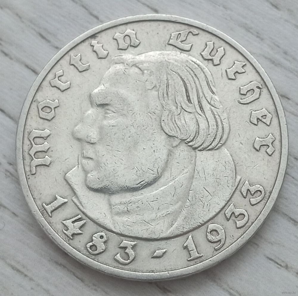 2 рейхсмарки Лютер J